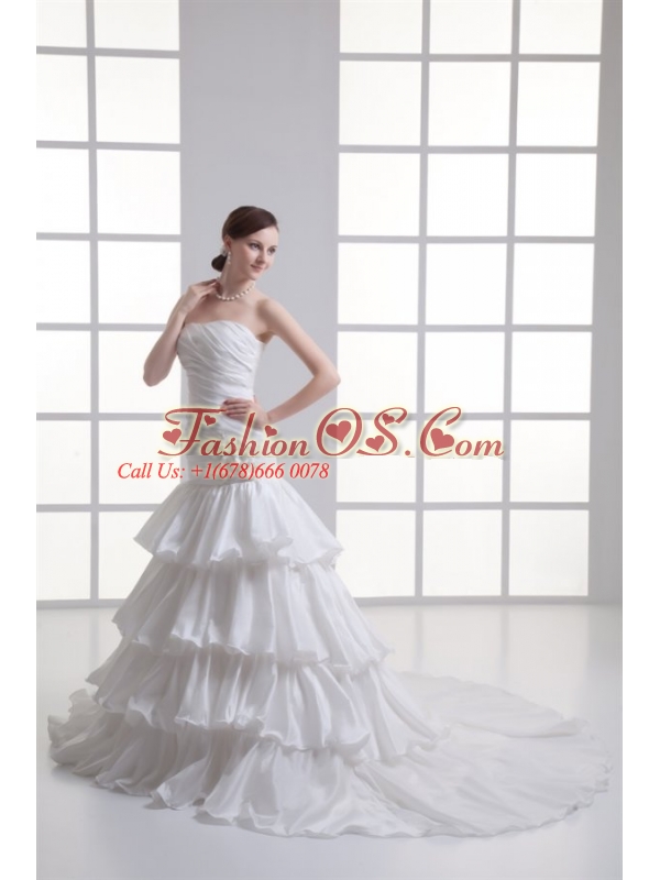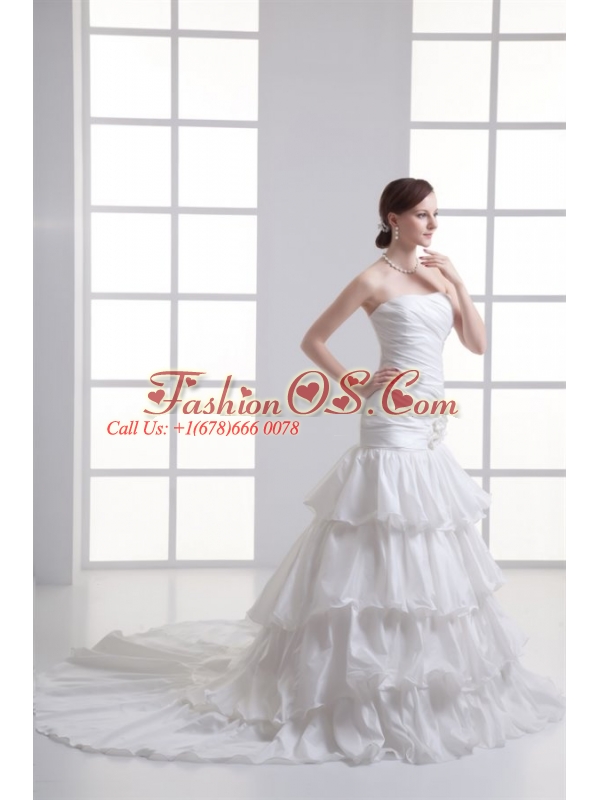 Home >  Wedding Dresses >  Perfect Wedding Dresses > Mermaid Strapless Ruffled Layers Appliques Chapel Train Wedding Dress
