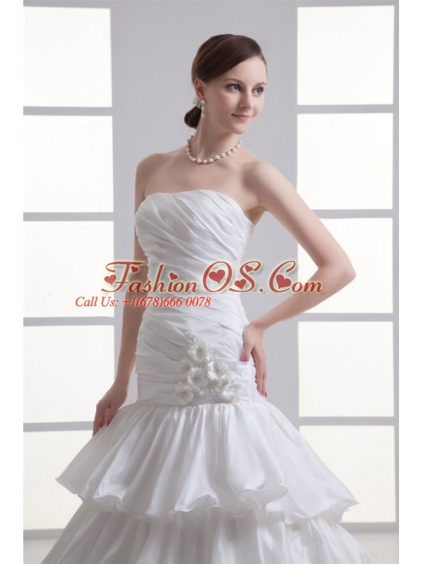 Mermaid Strapless Ruffled Layers Appliques Chapel Train Wedding Dress