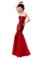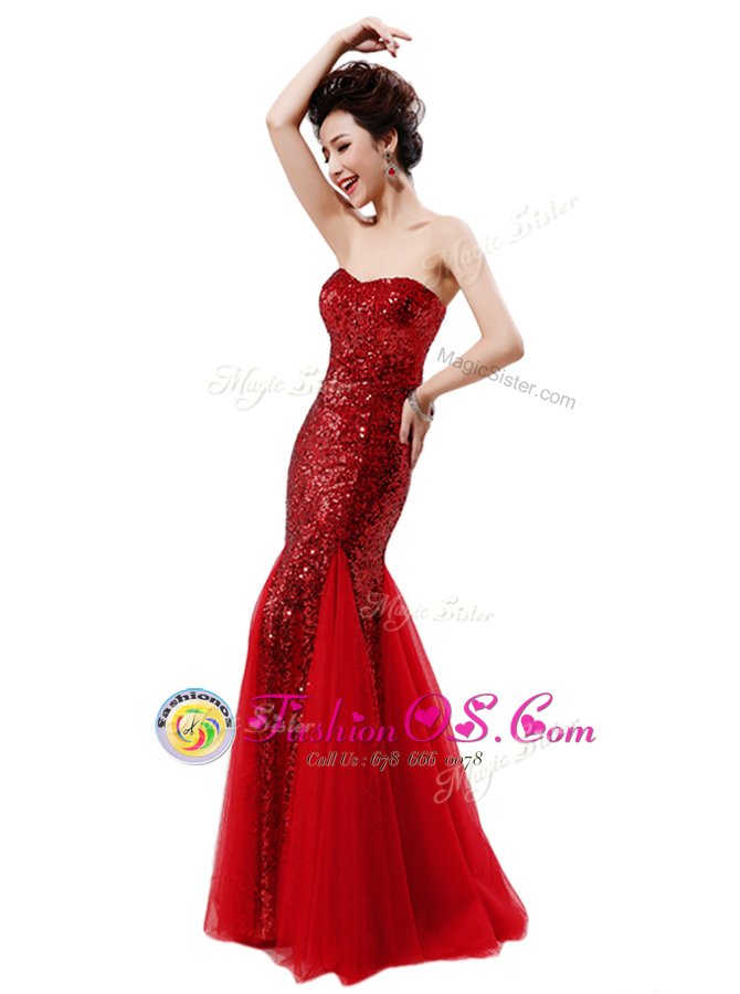 Mermaid Strapless Sleeveless Prom Dress Sequins Wine Red Sequined