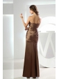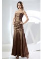 Mermaid Strapless Taffeta Brown Ruched Ankle-length Prom Dress