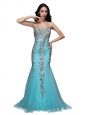 Home >  Prom Dresses >  Popular Prom Dresses > Mermaid Sweetheart Appliques Light Blue Brush Train Prom Dress