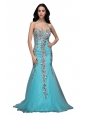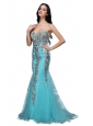 Mermaid Sweetheart Appliques Light Blue Brush Train Prom Dress