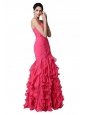 Mermaid Sweetheart Beading Ruffles Coral Red  Prom Dress