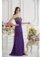 Mermaid Sweetheart Chiffon Beading Ruching Purple Prom Dress