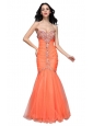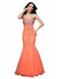 Home >  Prom Dresses >  Best Prom Dresses > Mermaid Sweetheart Orange Beading Ruching Organza Prom Dress