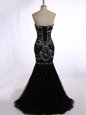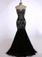 Mermaid Sweetheart Sleeveless Prom Dress Brush Train Beading Black Tulle