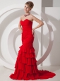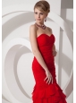 Mermaid / Trumpet Chiffon Sweetheart Brush / Sweep Ruffles Red Prom Dress