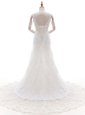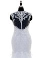 Mermaid Tulle Sleeveless With Train Wedding Gown Brush Train and Beading and Lace and Appliques