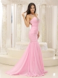 Home >  Special Occasion Dresses >  Celebrity Dresses > Mermaid V-neck Beaded Decorate Shoulder Ruched Bodice For Romantic Celebrity Dress