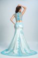 Warning: number_format() expects parameter 2 to be long, string given in /home/fashonos/domains/fashionos.com/public_html/includes/classes/currencies.php on line 52 Mermaid V-neck Sleeveless Homecoming Dress With Brush Train Beading and Pattern Blue And White Chiffon- HK$