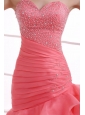 Mermaid Watermelon Red Sweetheart Beading Ruffled Layers Ruching Prom Dress