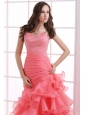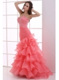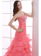 Home >  Prom Dresses >  Fashionable Prom Dresses > Mermaid Watermelon Red Sweetheart Beading Ruffled Layers Ruching Prom Dress