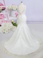 Mermaid White Bateau Backless Beading and Appliques Wedding Gown Brush Train Sleeveless
