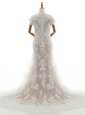 Home >  Wedding Dresses >  Beautiful Wedding Dresses > Mermaid White Lace Clasp Handle Bridal Gown Cap Sleeves With Train Chapel Train Lace and Appliques