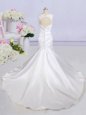 Mermaid White Scoop Neckline Beading and Lace and Appliques Wedding Gowns Sleeveless Backless