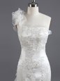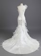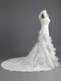 Mermaid White Sleeveless With Train Beading and Appliques and Ruffles Lace Up Wedding Gowns