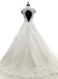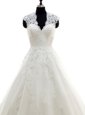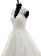 Mermaid White Wedding Dress Wedding Party and For with Lace V-neck Sleeveless Chapel Train Backless