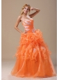 Home >  Special Occasion Dresses >  Military Ball Gowns > Michigan Appliques Decorate Up Bodice Orange With Hand Made Flowers Floor-length For 2013 Military Ball Gowns