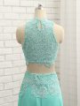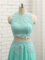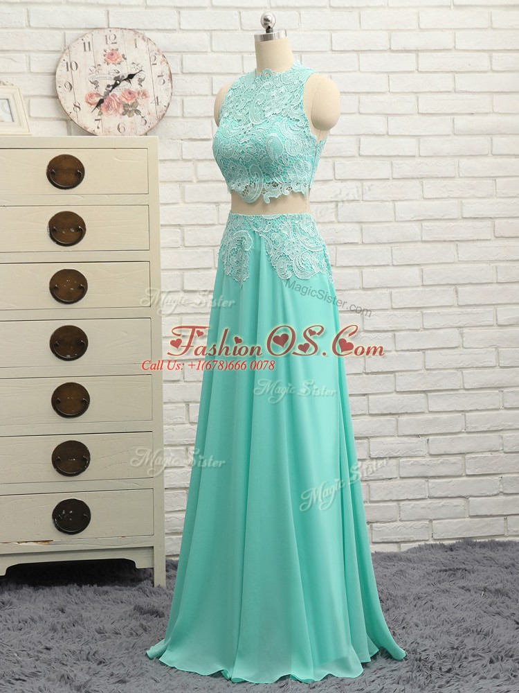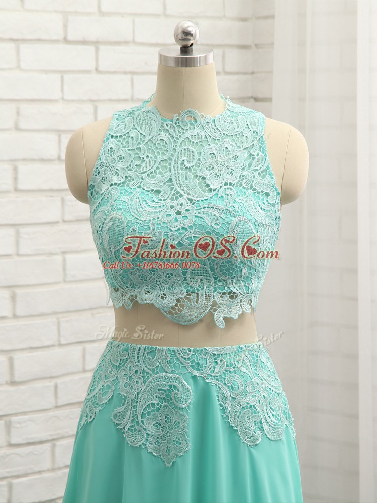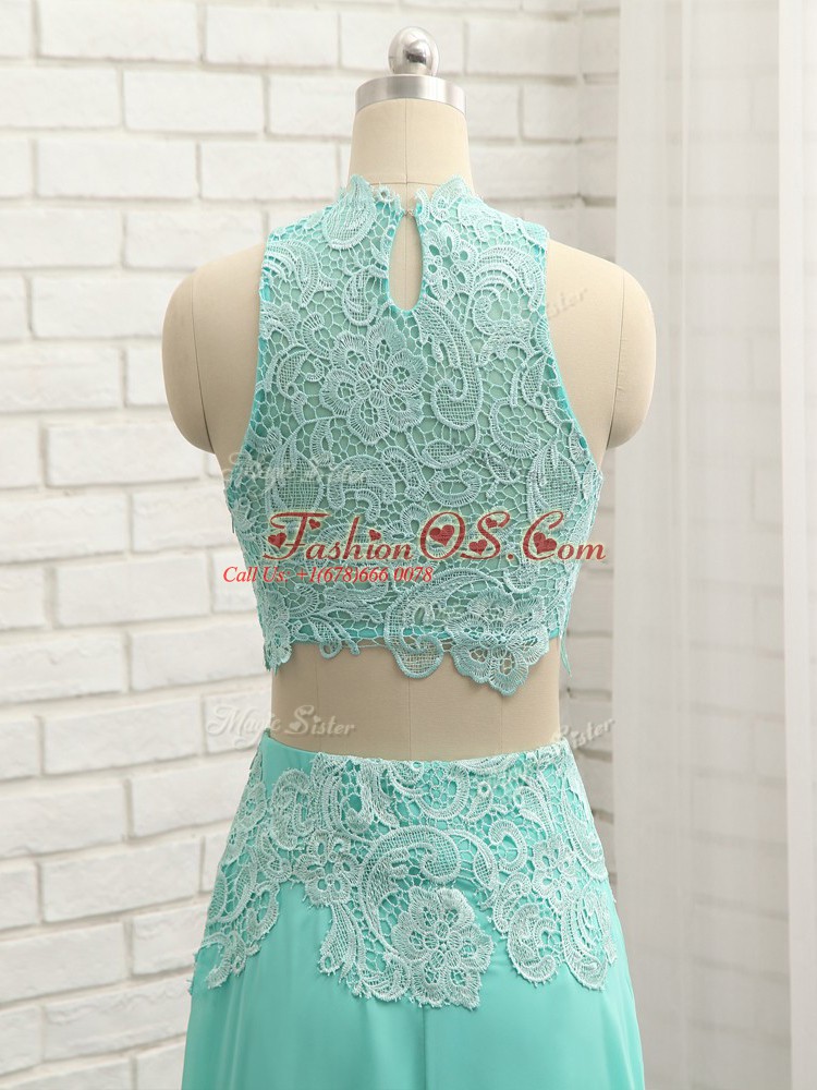 Mini Length Apple Green Homecoming Dress Chiffon Sleeveless Lace and Appliques