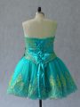 Mini Length Ball Gowns Sleeveless Turquoise Prom Evening Gown Lace Up