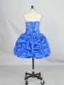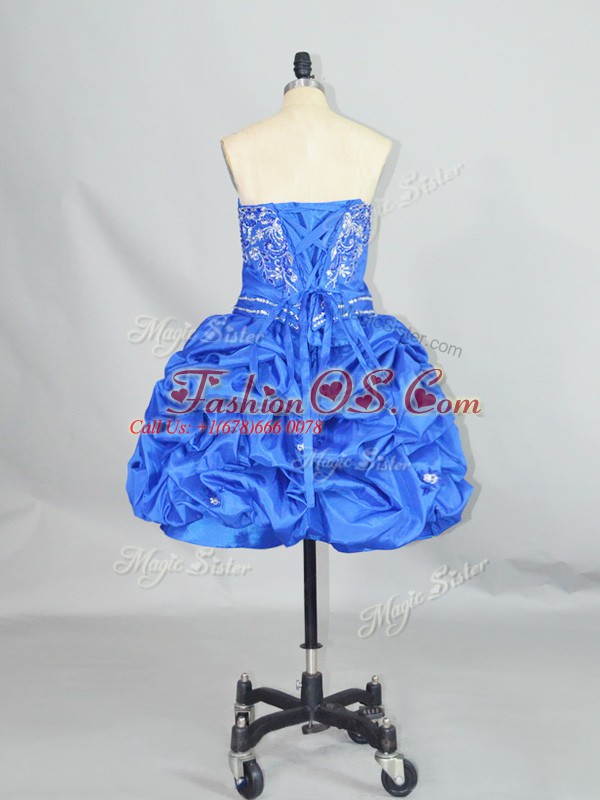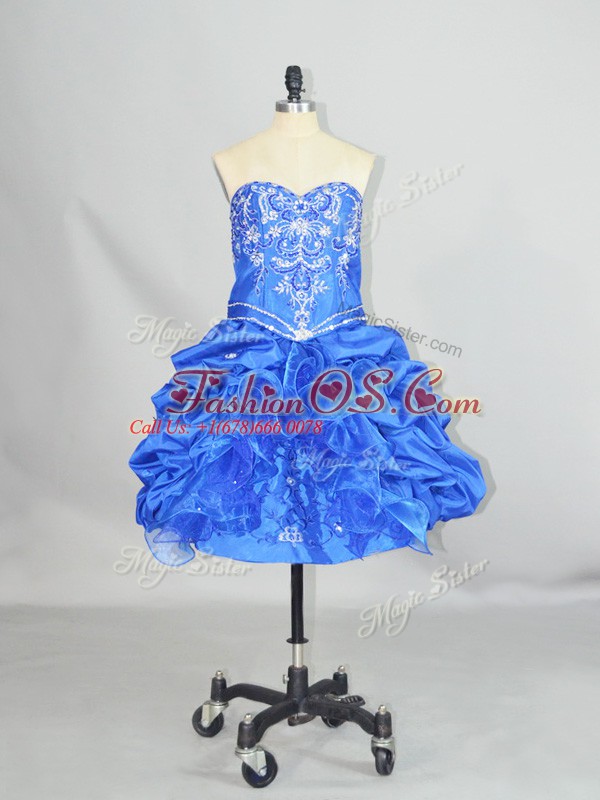 Mini Length Blue Celebrity Evening Dresses Organza and Taffeta Sleeveless Beading and Ruffles and Pick Ups