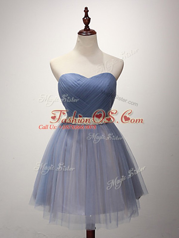 Mini Length Blue Court Dresses for Sweet 16 Tulle Sleeveless Beading and Ruching