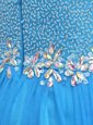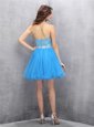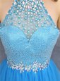 Mini Length Blue Dress for Prom High-neck Sleeveless Zipper