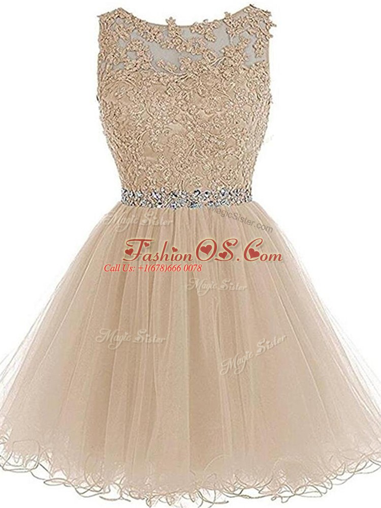 Mini Length Champagne Homecoming Dress Scoop Sleeveless Zipper