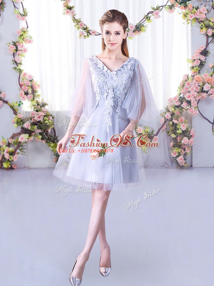 Home >  Bridesmaid Dresses >  Perfect Bridesmaid Dresses > Mini Length Grey Wedding Guest Dresses Tulle Sleeveless Lace