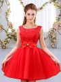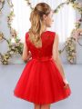 Mini Length Lace Up Bridesmaid Dresses Red for Wedding Party with Lace and Bowknot