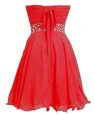 Home >  Prom Dresses >  Unique Prom Dresses > Mini Length Lace Up Prom Evening Gown Red and In for Prom and Party with Beading and Belt