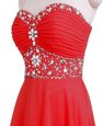 Mini Length Lace Up Prom Evening Gown Red and In for Prom and Party with Beading and Belt