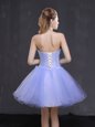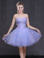 Mini Length Lavender Evening Dress Tulle Sleeveless Appliques