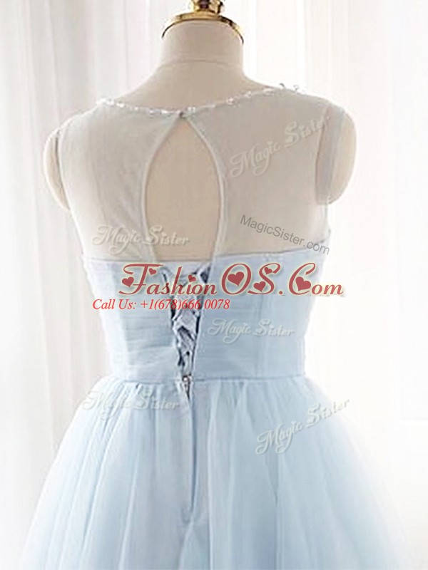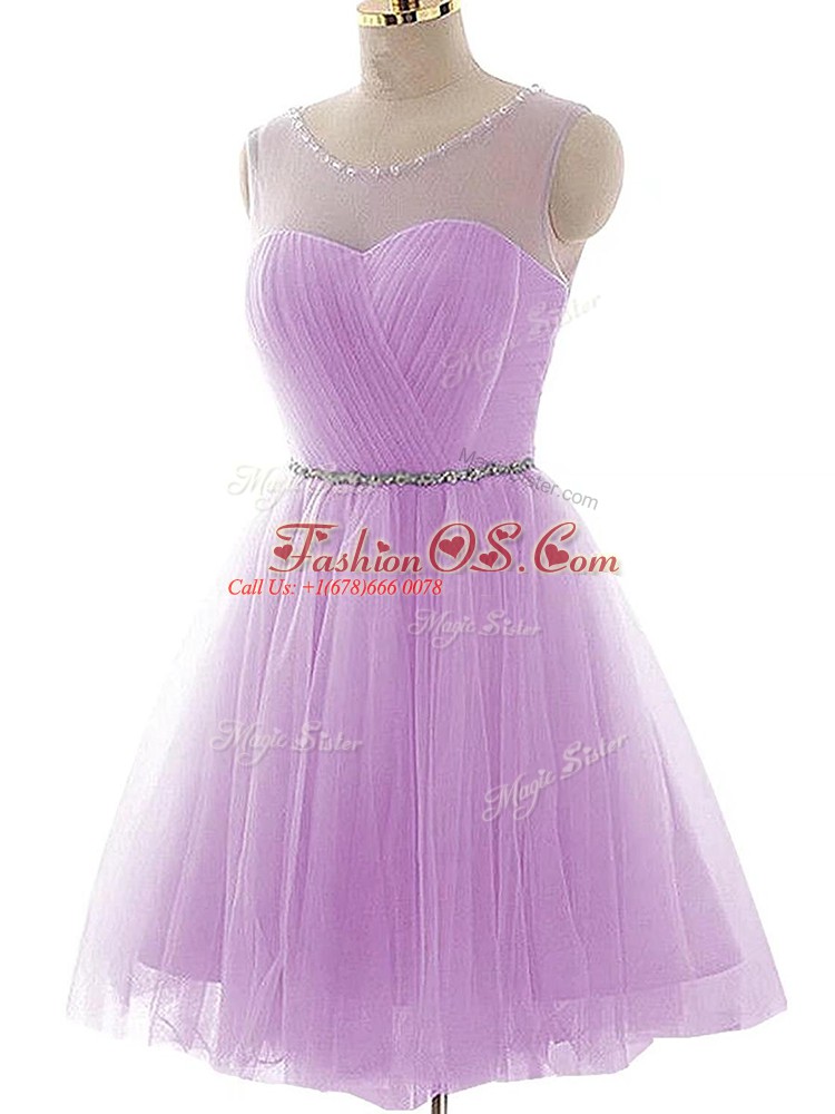 Mini Length Lavender Prom Gown Scoop Sleeveless Lace Up
