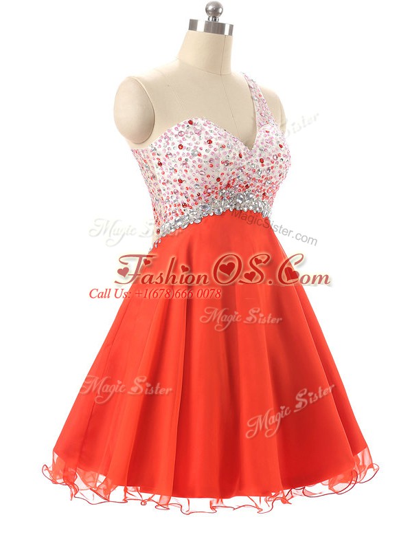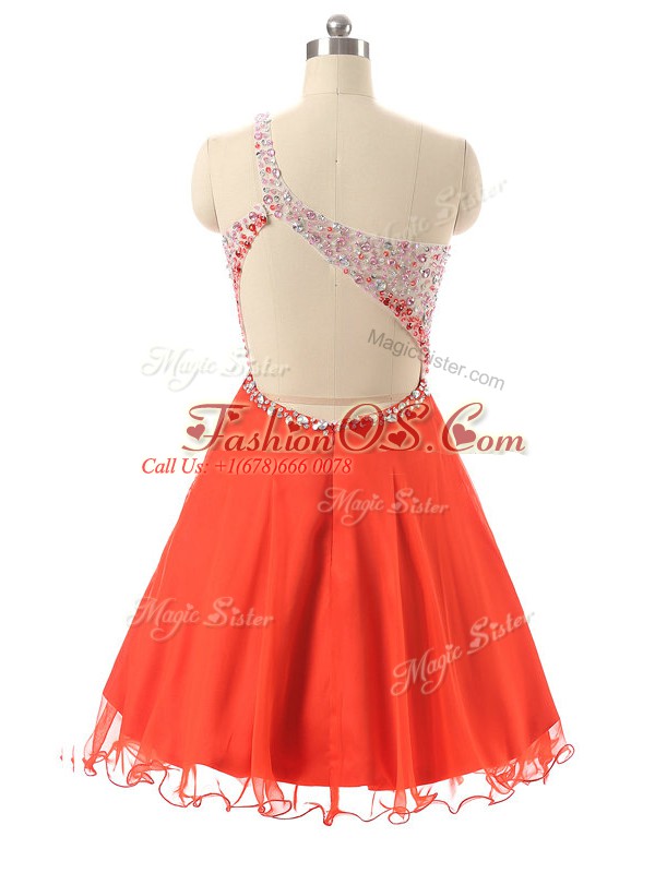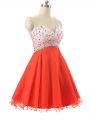 Mini Length Orange Red Cocktail Dress Chiffon and Tulle Sleeveless Beading