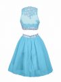 Mini Length Side Zipper Homecoming Dress Online Aqua Blue for Prom and Party and Sweet 16 with Beading