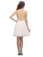 Mini Length White Homecoming Dress Spaghetti Straps Sleeveless Backless