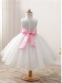 Mini Length White Little Girls Pageant Dress Organza Sleeveless Bowknot