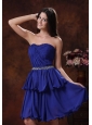 Mini-length Royal Blue Chiffon Short Prom Dress For Homecoming With Beaded Decorate Waist In Tucson Arizona