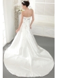 Modern A-line / Princess Strapless Court Train Satin Beading Wedding Dress