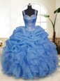 Modern Blue Sleeveless Floor Length Beading and Ruffles and Pick Ups Zipper Quinceanera Gowns