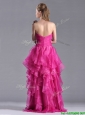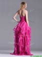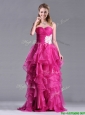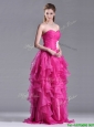 Modern Brush Train Fuchsia Prom Dress with Appliques and Ruffles