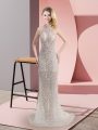 Modern Champagne Mermaid Beading Prom Evening Gown Backless Tulle Sleeveless