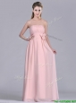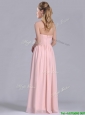 Modern Chiffon Handcrafted Flowers Long Bridesmaid Dress in Baby Pink