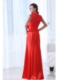 Modern Column Red Floor-length Lace Prom Dress with High Neck