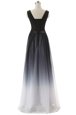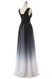 Modern Empire Dress for Prom Black V-neck Chiffon Sleeveless Floor Length Lace Up