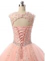 Modern Floor Length Peach Sweet 16 Quinceanera Dress Tulle Sleeveless Beading and Lace