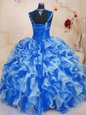 Modern Floor Length Royal Blue 15 Quinceanera Dress Sweetheart Sleeveless Lace Up