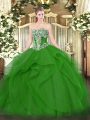 Modern Green Sleeveless Floor Length Beading and Ruffles Lace Up Quinceanera Gowns