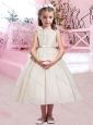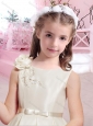 Modern Hand Made Flower and Belted Flower Girl Dress with Bateau